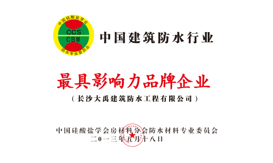 榮獲中國建筑防水行業最具影響力品牌企業稱號;湖南省建筑防水協會副會長單位
